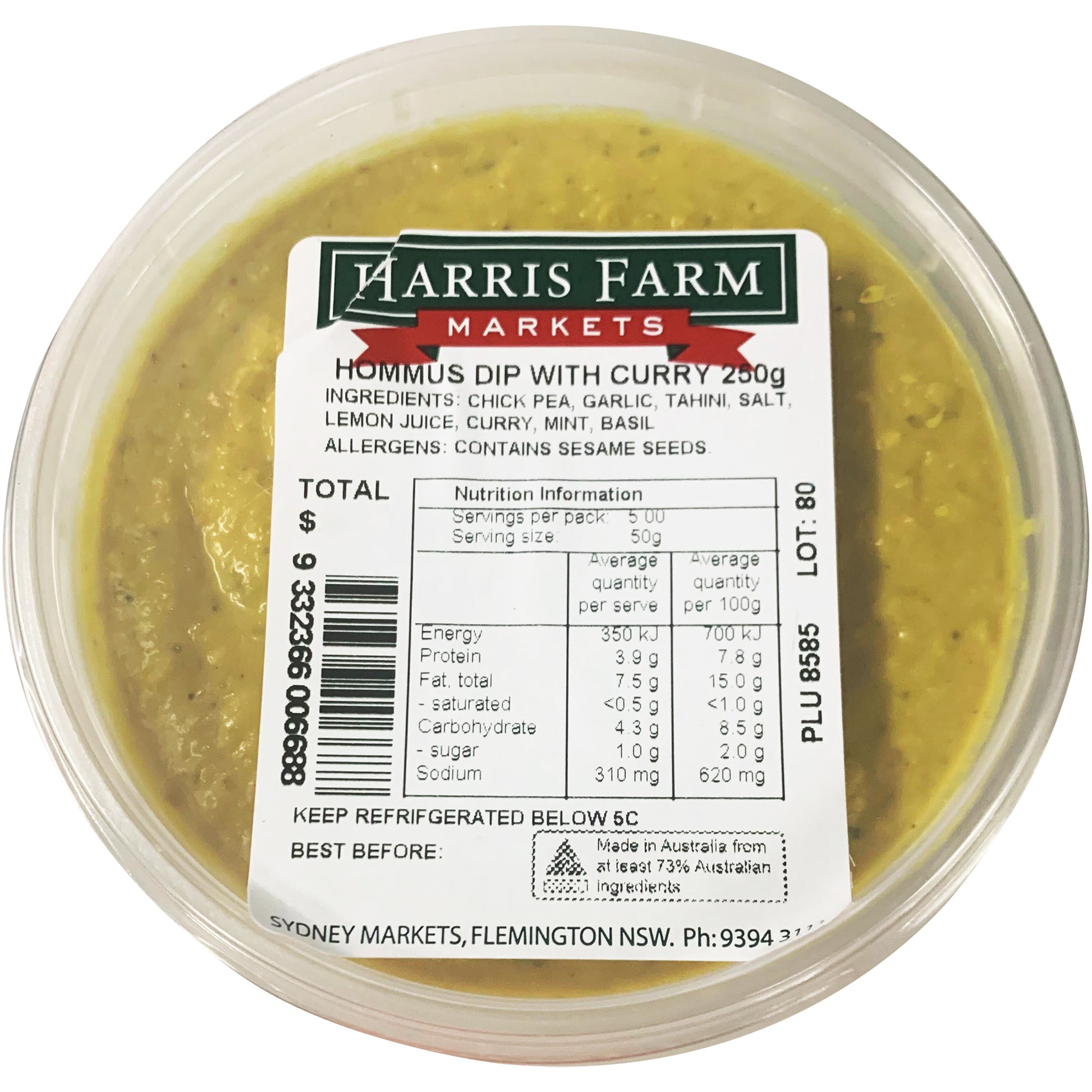 Enjoy the rich and exotic flavors of our Harris Farm Dip Hommus Curry 250g. Made with premium ingredients, this creamy dip is perfect for adding a touch of spice to your snacking experience. Elevate your meals with this delicious and healthy dip that is sure to satisfy your taste buds.