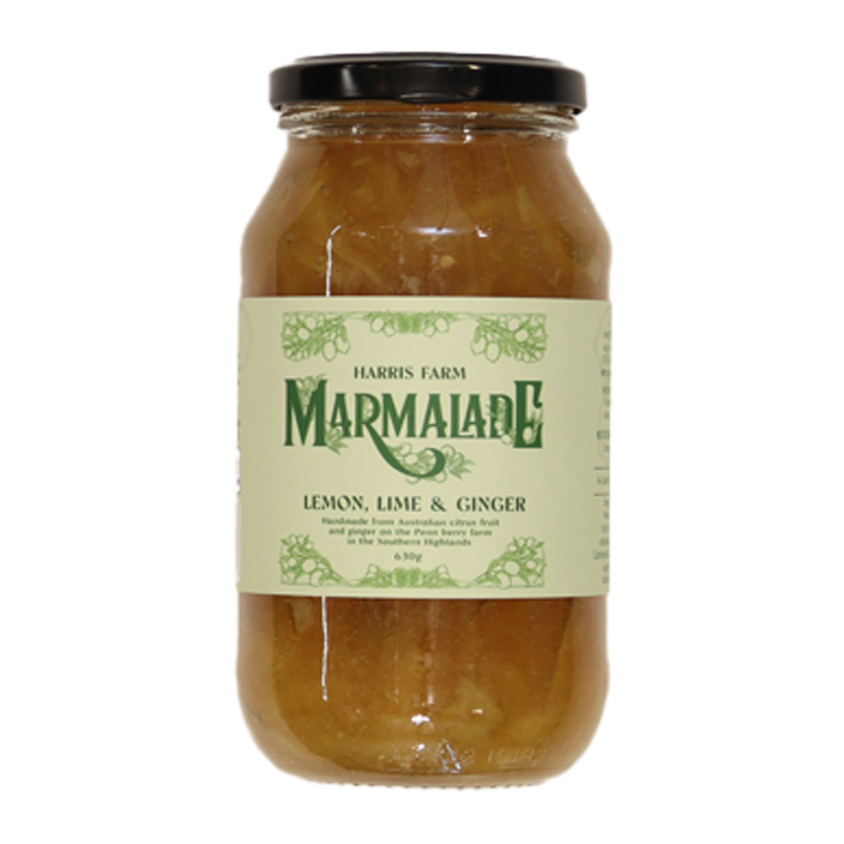 Harris Farm Ginger and Lime Marmalade 620g: Elevate your breakfast with our zesty blend of ginger and lime. Handcrafted with premium ingredients for a burst of flavor in every bite. Perfect for spreading on toast or adding a tangy twist to your recipes. Enjoy the taste of quality with Harris Farm.