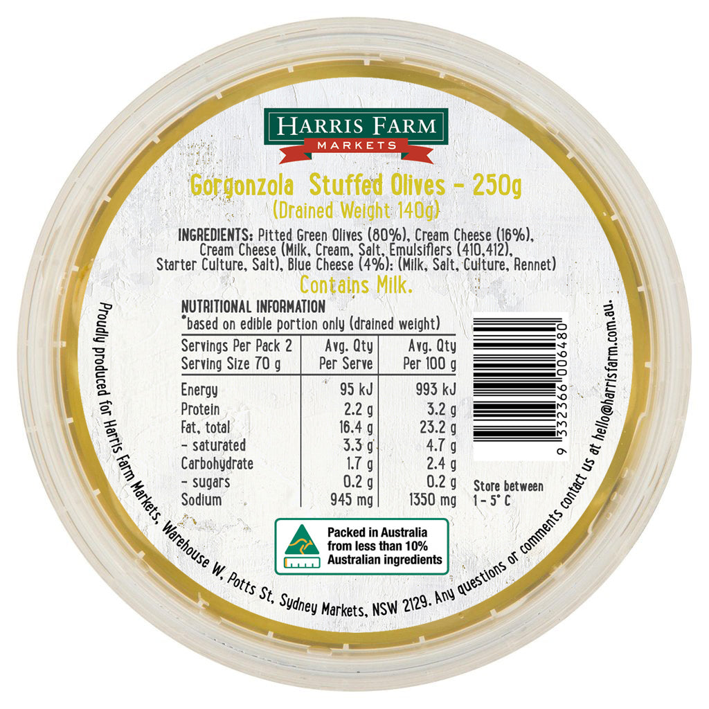 Harris Farm Olives Gorgonzola Stuffed 250g