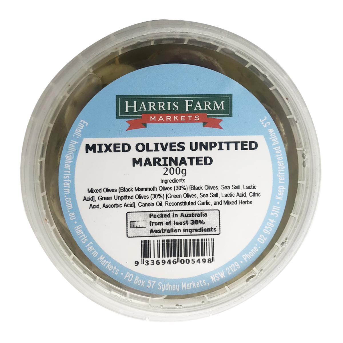 Harris Farm Mixed Olives Unpitted Marinated 200g