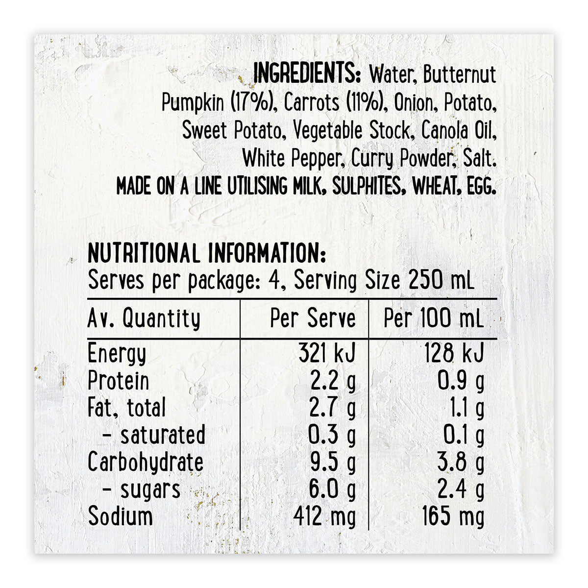 Enjoy the rich and comforting flavors of Harris Farm Soup Pumpkin and Carrot 1L. Made with fresh, high-quality ingredients, this hearty soup is perfect for a quick and delicious meal. Packed with nutrients and bursting with flavor, it's a convenient and healthy choice for any time of day. Try Harris Farm Soup Pumpkin and Carrot 1L today for a satisfying and nourishing experience.