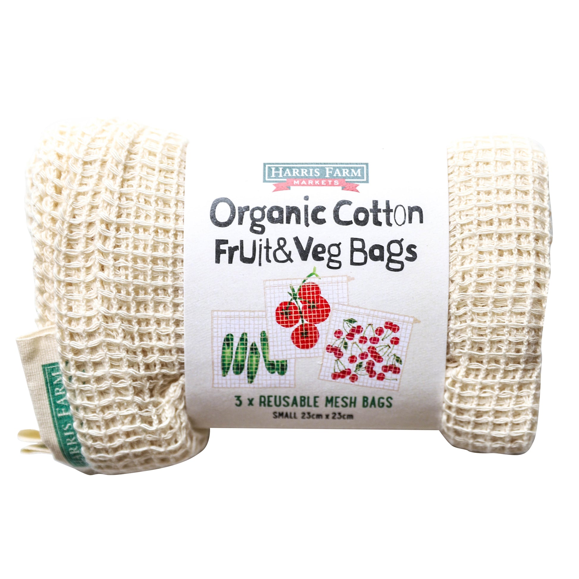 Harris Farm Reusable Organic Cotton Small Mesh Fruit and Veg Bags x3