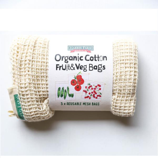 Harris Farm Reusable Organic Cotton Mesh Fruit and Veg Bags x3