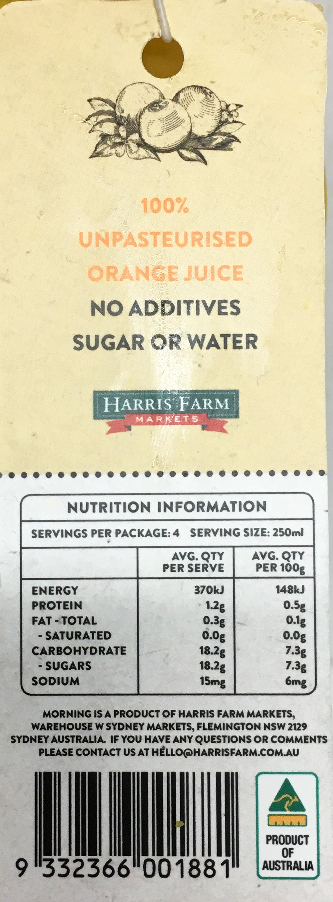 Harris Farm Fresh Orange Juice 1L: Enjoy pure, refreshing goodness with our premium orange juice. Packed with vitamin C and natural sweetness, our juice is the perfect way to kickstart your day. Taste the difference of farm-fresh quality in every sip.