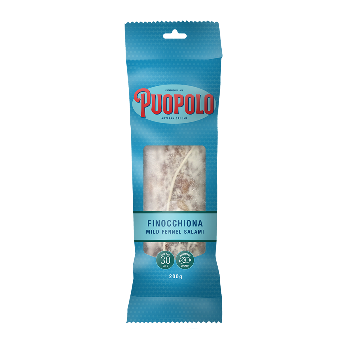 Puopolo Finocchiona Mild 200g offers a delectable blend of premium pork and aromatic fennel seeds, creating a savory and flavorful experience with every bite. Perfect for charcuterie boards, sandwiches, or as a standalone snack. Elevate your culinary creations with this traditional Italian salami.