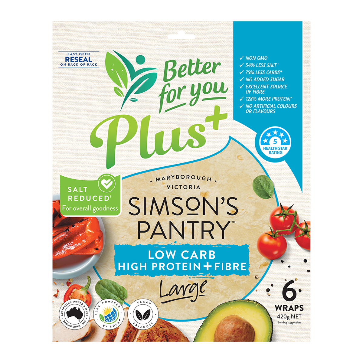 Simson's Pantry Low Carb High Protein + Fibre 420g is a delicious and nutritious option for those looking to maintain a healthy lifestyle. Packed with protein and fiber, this product will keep you feeling full and satisfied while supporting your fitness goals. Enjoy the benefits of a low carb diet without sacrificing taste with Simson's Pantry.