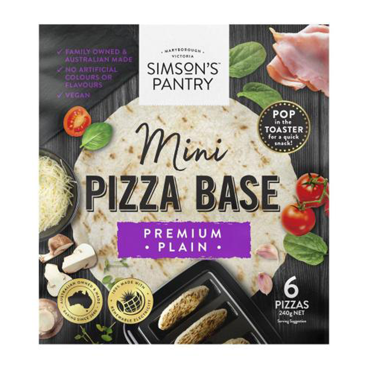Simson's Pantry Mini Pizza Plain 240g: Deliciously convenient mini pizzas perfect for a quick and satisfying snack. Enjoy the classic taste of pizza in a convenient size. Ideal for busy days or anytime cravings strike.