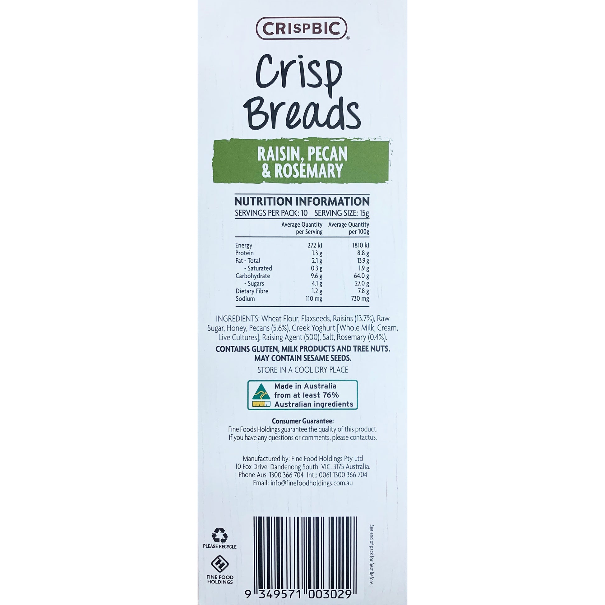 Crispbic Crisp Breads Raisin Pecan and Rosemary 150g