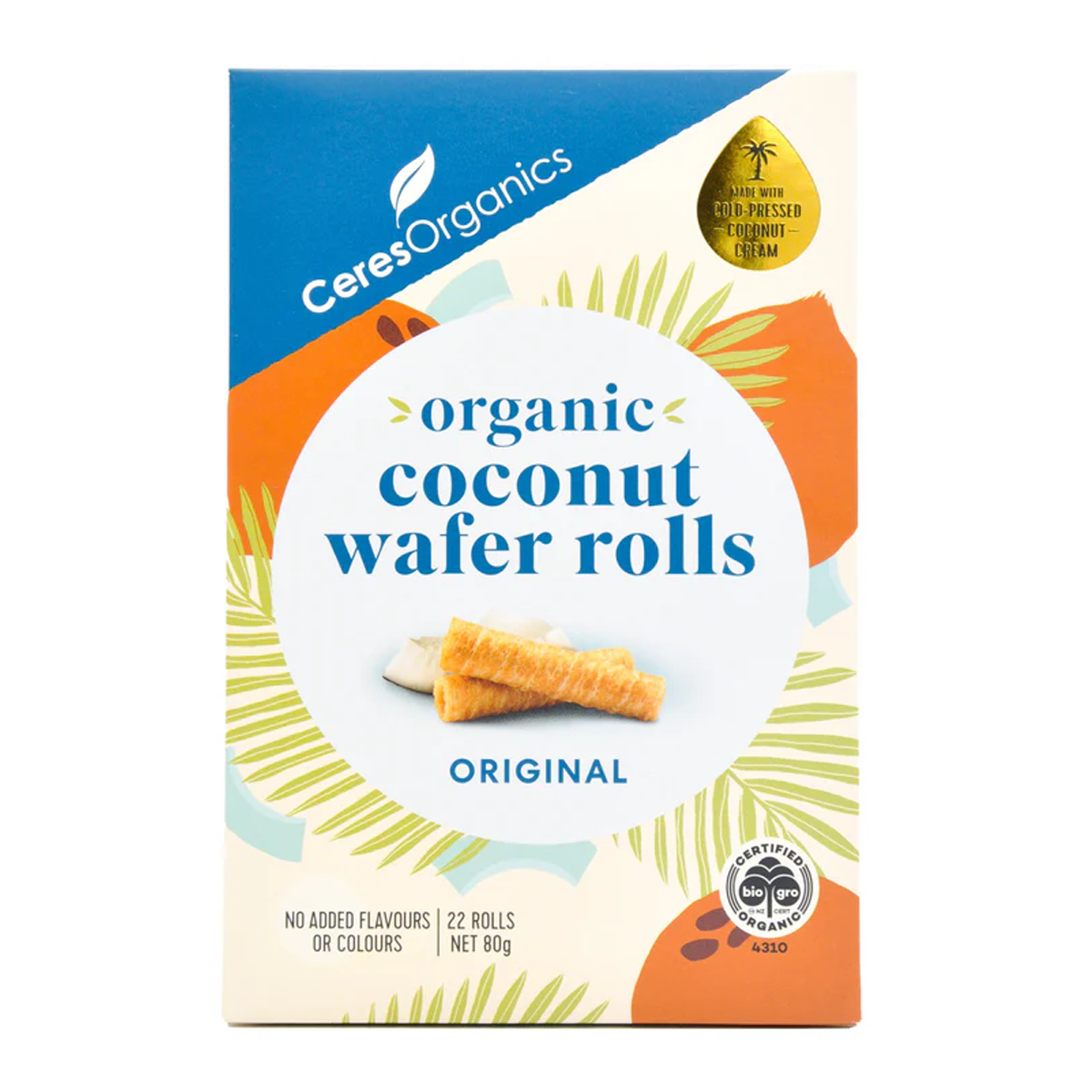 Ceres Organics Coconut Wafer Rolls Original 80g are deliciously crispy snacks made with organic coconut, perfect for satisfying your cravings guilt-free. Enjoy the natural sweetness of coconut in every bite, packed with wholesome ingredients for a tasty and healthy treat. Ideal for on-the-go snacking or as a light dessert, these wafer rolls are a must-have for coconut lovers looking for a satisfying and nutritious snack option.