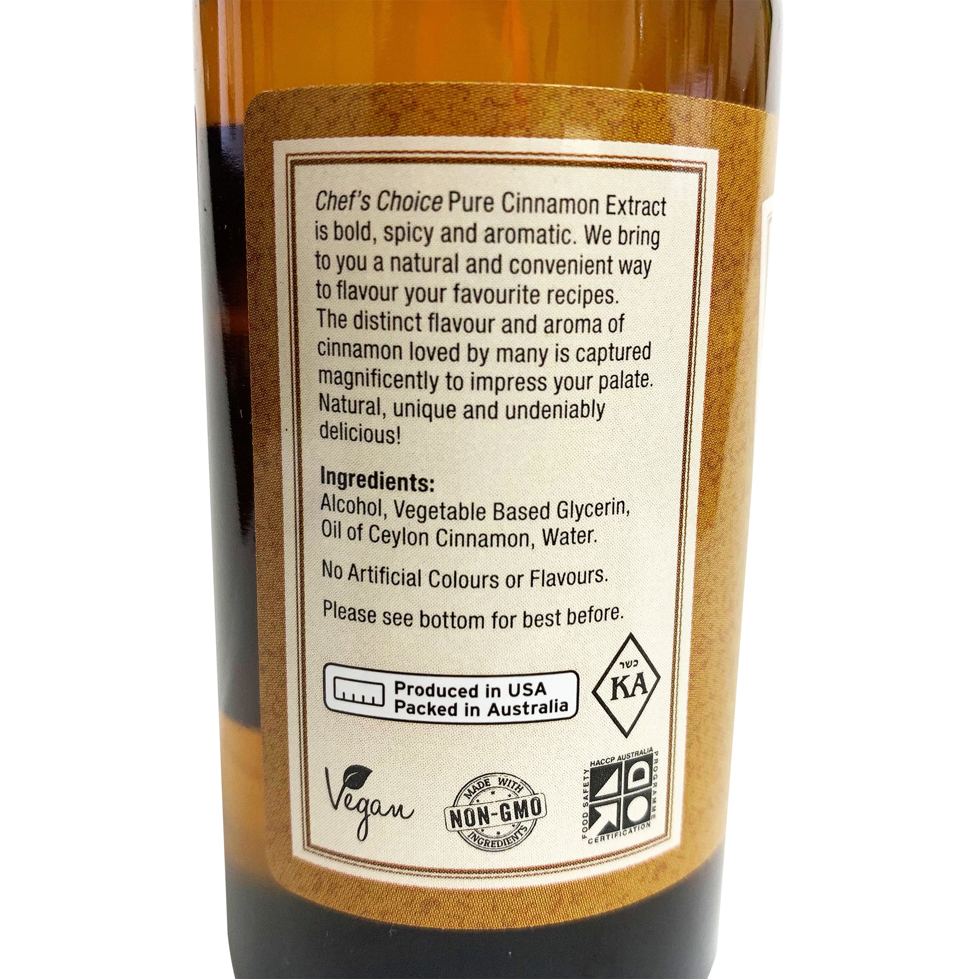 Enhance your culinary creations with Chef's Choice Pure Cinnamon Extract 100ml. Elevate your dishes with the rich, warm flavor of premium cinnamon extract. Perfect for adding depth and complexity to both sweet and savory recipes. Unlock a world of delicious possibilities with every drop.