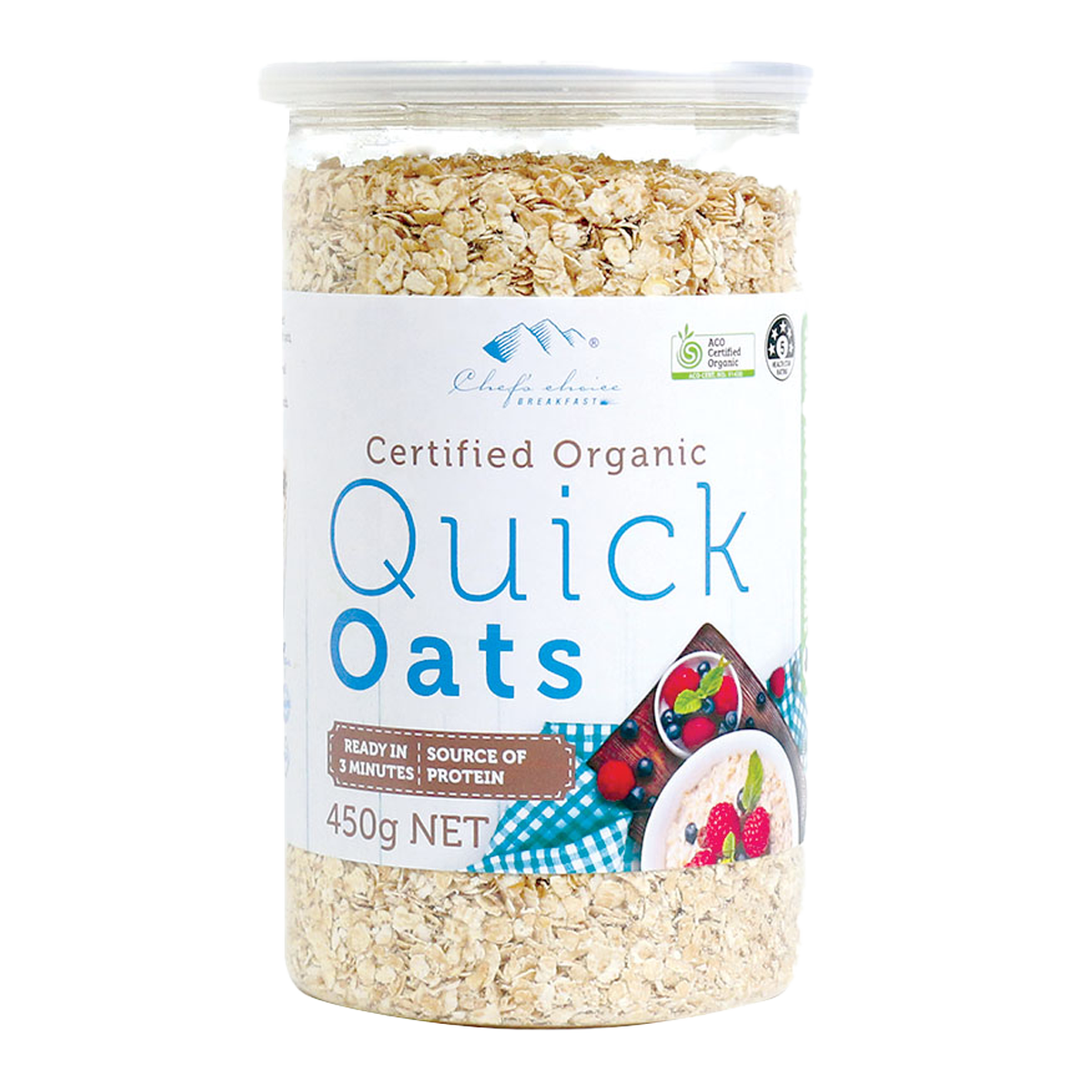 Chef's Choice Organic Rolled Oats 450g: Start your day right with our premium organic rolled oats. Packed with fiber and nutrients, our oats are perfect for a healthy and delicious breakfast. Boost your energy and support your overall well-being with every spoonful. Order now for a nutritious morning routine!