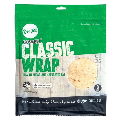 Diego's Classic Wrap x8 400g: Enjoy the perfect balance of softness and flavor with our delicious classic wraps. Versatile and convenient, these wraps are ideal for creating a variety of tasty meals for the whole family. Elevate your dining experience with Diego's Classic Wrap x8 400g.