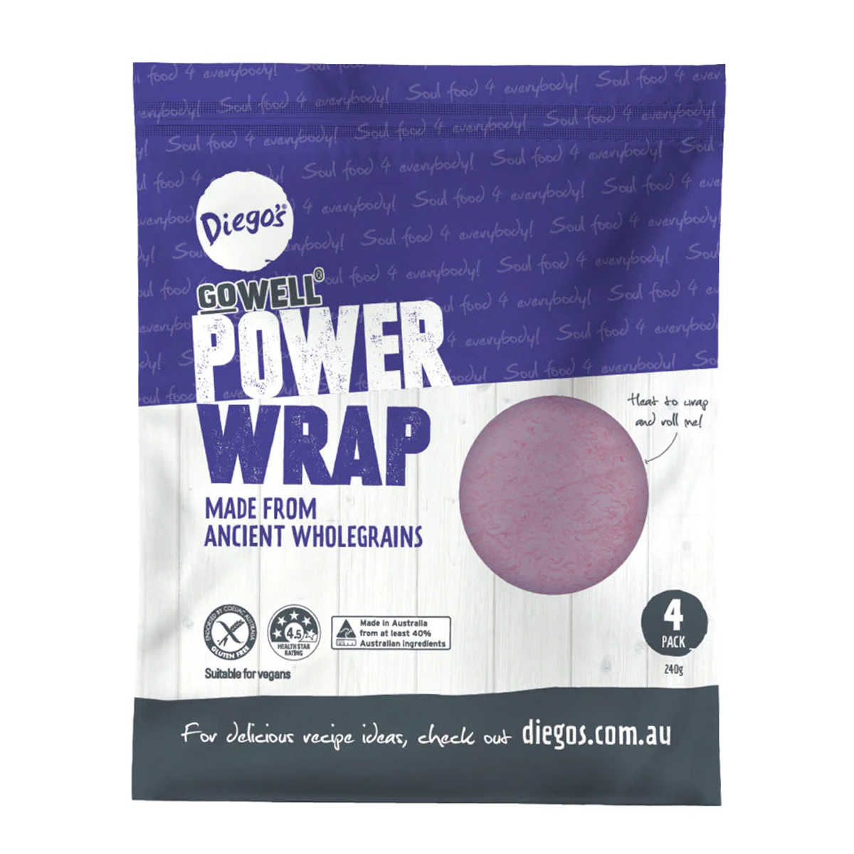 Diego's Gluten Free Power Wrap x4 240g: Fuel your day with these delicious and nutritious wraps, packed with wholesome ingredients and free from gluten. Perfect for a quick and satisfying meal on the go.