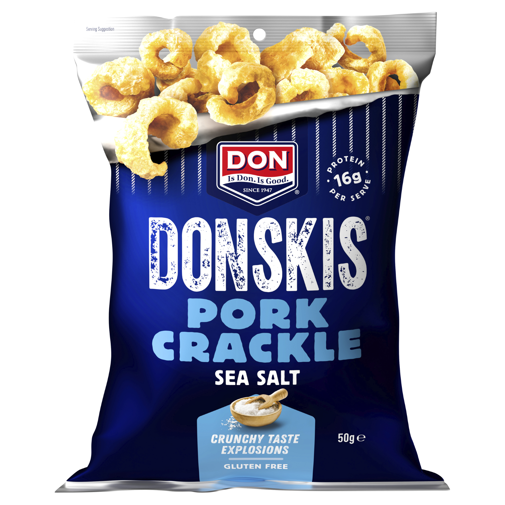Don Donskis Pork Crackle Sea Salt 50g offers a satisfyingly crunchy snack experience with a burst of savory sea salt flavor. Indulge guilt-free in this protein-packed, low-carb treat that is perfect for on-the-go snacking. Elevate your snack game with Don Donskis Pork Crackle Sea Salt 50g.