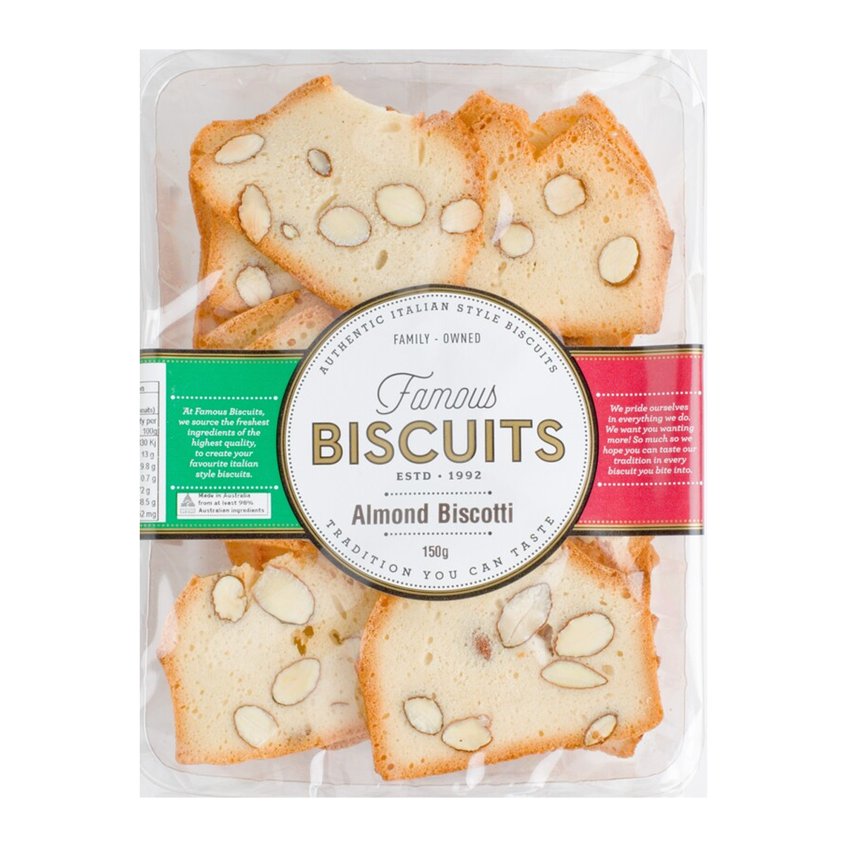 Indulge in the rich and crunchy delight of Famous Biscuits Almond Biscotti. Made with premium almonds, these Italian-inspired treats are perfect for satisfying your sweet cravings. Enjoy the perfect balance of sweetness and crunch in every bite with our 150g pack of Almond Biscotti. Treat yourself to a taste of luxury today!