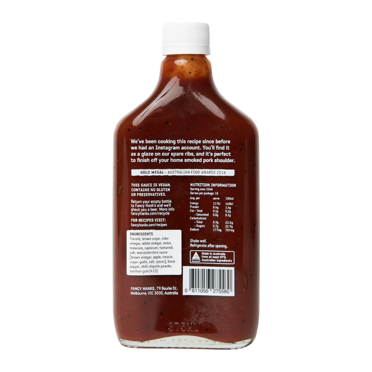 Fancy Hank's Original BBQ Sauce 375ml: Elevate your grilling game with our rich and smoky sauce, crafted to perfection for mouthwatering flavor. Ideal for marinating, dipping, or glazing, this gluten-free and vegan-friendly sauce will take your BBQ dishes to the next level. Unlock a world of delicious possibilities with Fancy Hank's Original BBQ Sauce.