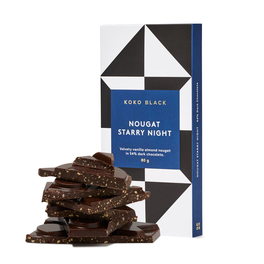 Indulge in the rich and decadent flavors of Koko Black Nougat Starry Night Block. This 90g treat is a perfect blend of creamy nougat and premium chocolate, creating a heavenly experience with every bite. Elevate your snacking game with this luxurious treat that is sure to satisfy your sweet cravings.