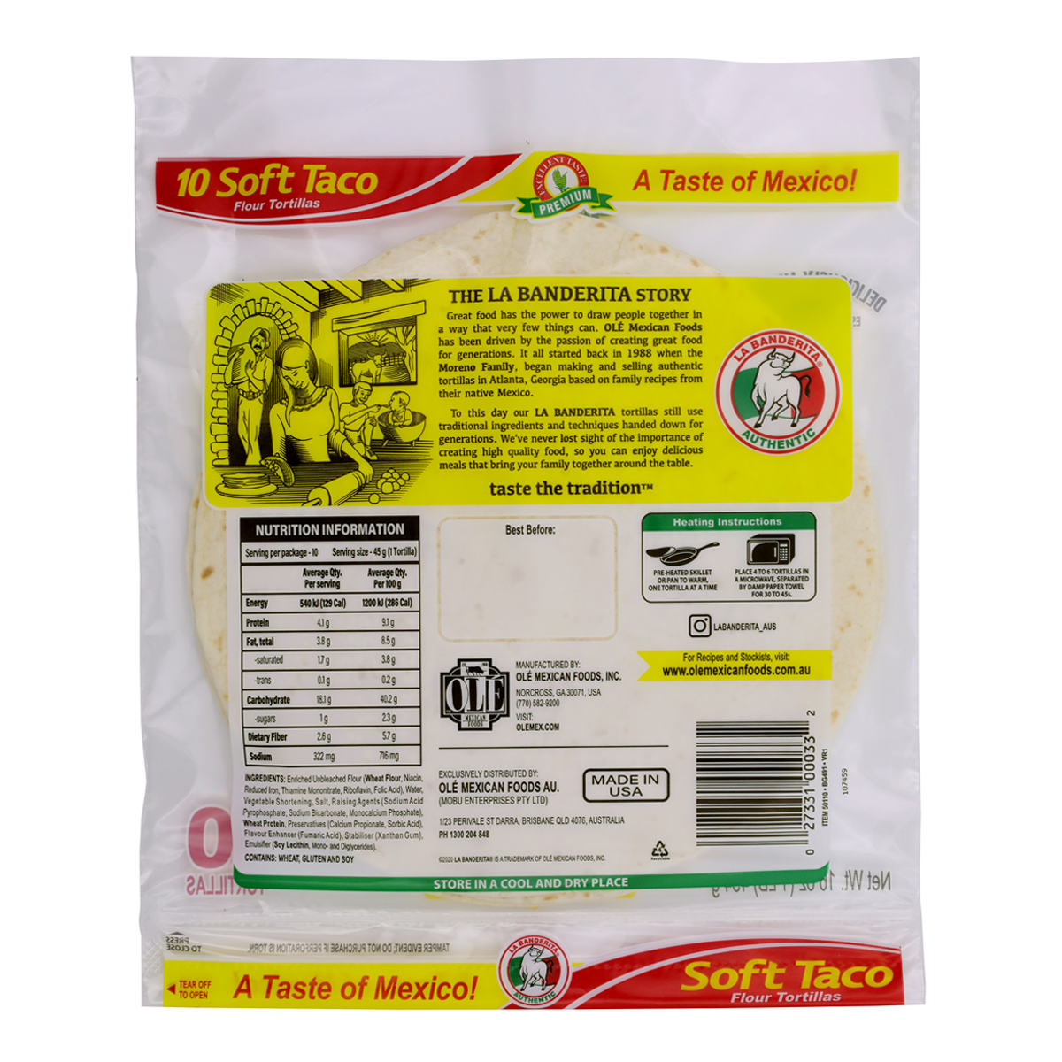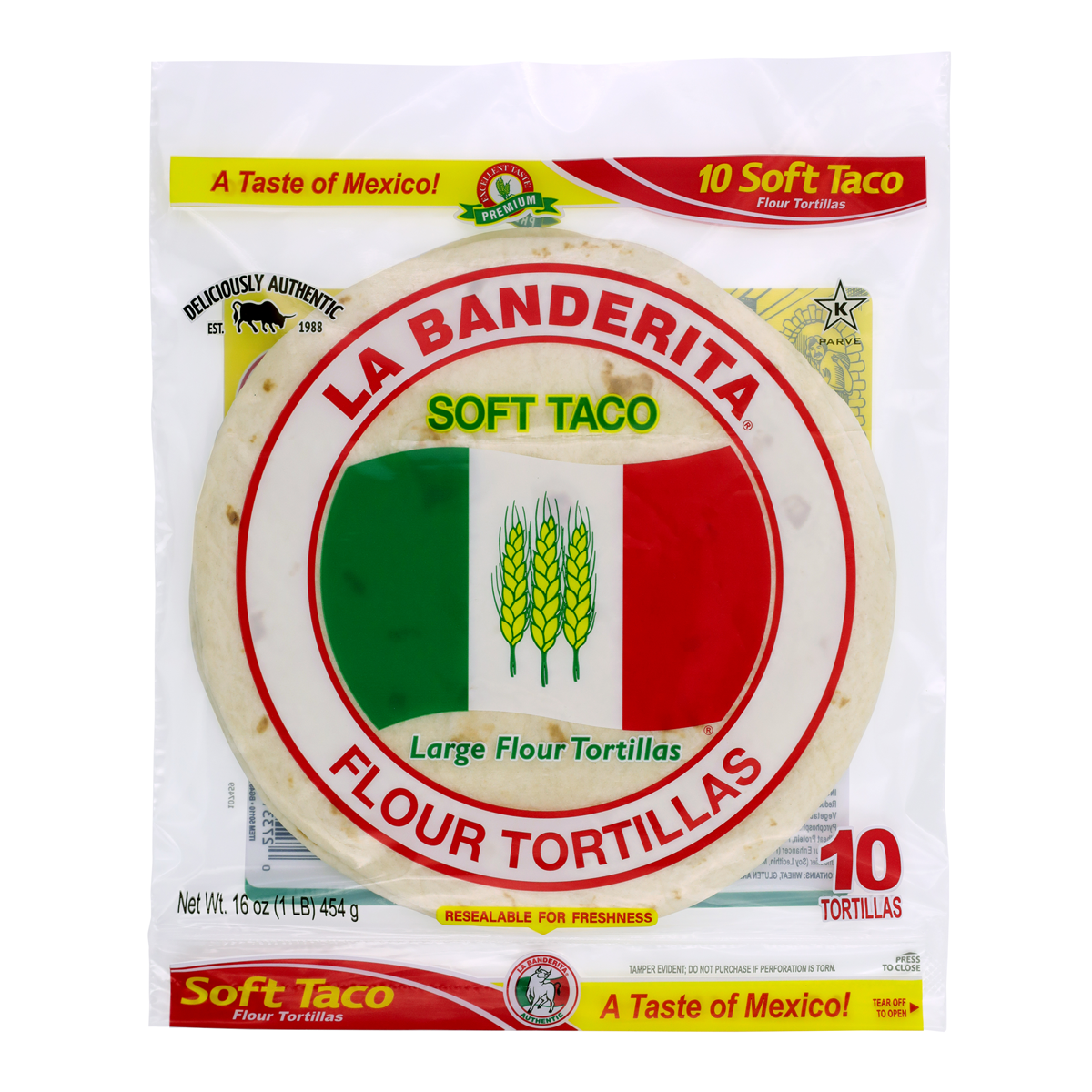 La Banderita Soft Taco x10 454g offers the perfect blend of softness and flavor for your favorite taco recipes. Enjoy the convenience of 10 soft and delicious tortillas in one pack, making meal prep a breeze. Elevate your taco nights with La Banderita!