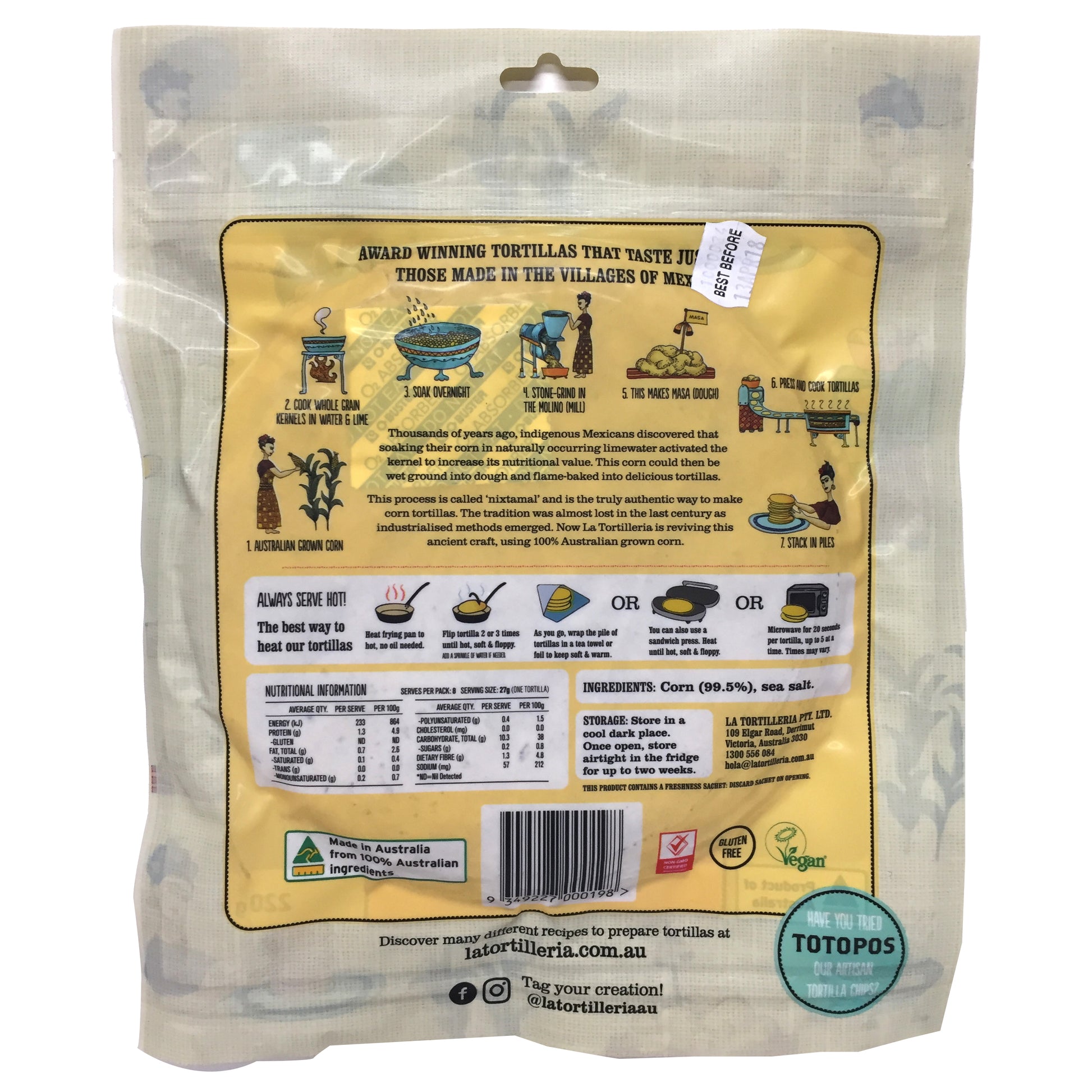 La Tortilleria Corn Tortillas Gluten Free 220g: Enjoy authentic Mexican flavor with our gluten-free corn tortillas. Made with premium ingredients, these tortillas are perfect for creating delicious tacos, quesadillas, and more. Elevate your meals with La Tortilleria's superior quality and taste.