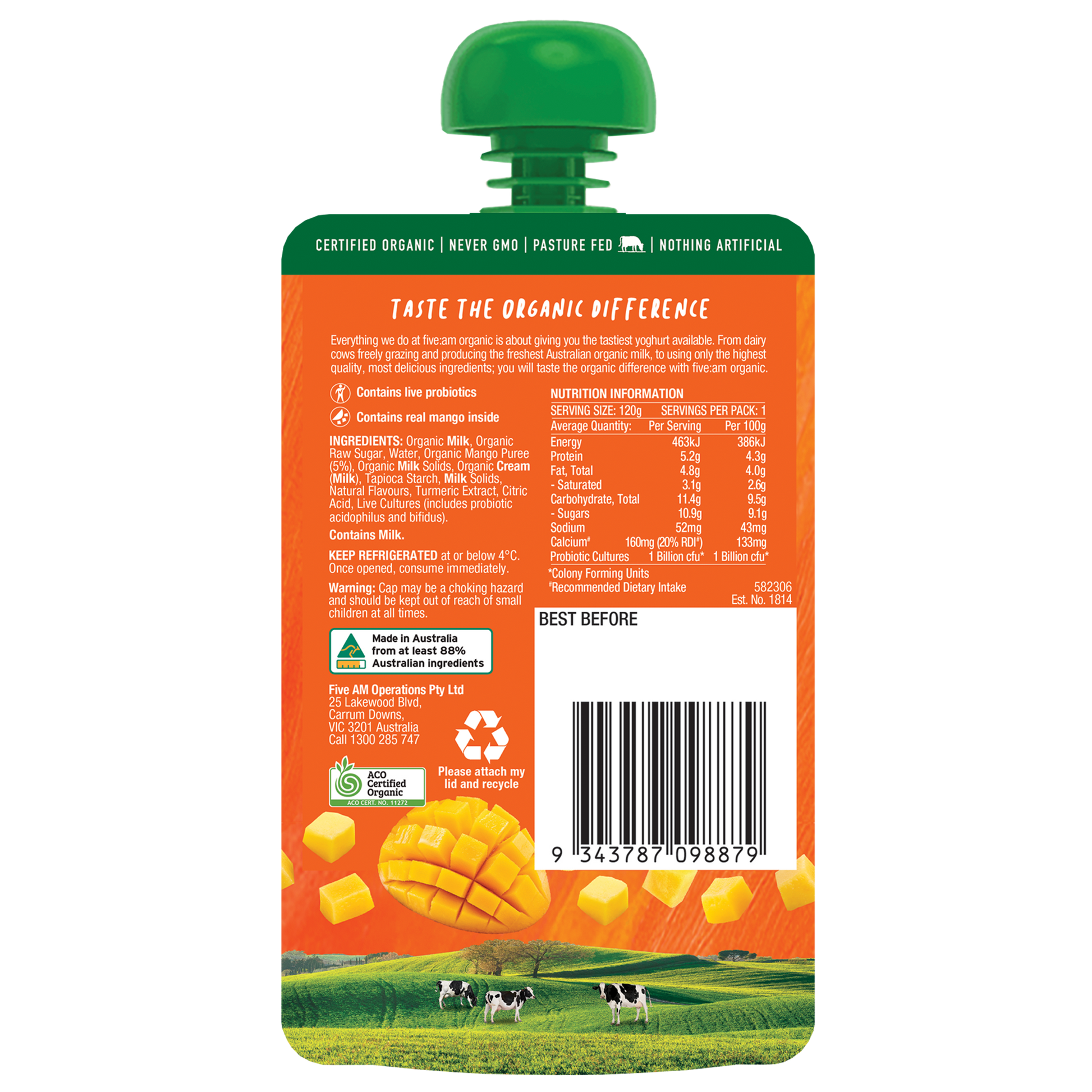 Five AM Mango Organic Kids Yoghurt 120g is a delicious and nutritious snack that will keep your little ones satisfied and energized throughout the day. Made with organic ingredients, this yogurt is packed with vitamins and minerals to support your child's growth and development. With the sweet and tangy flavor of mango, it's a treat that kids will love and parents can feel good about. Try Five AM Mango Organic Kids Yoghurt today for a wholesome snack that will make both kids and parents happy!