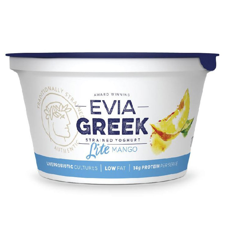Indulge guilt-free with Evia Greek Strained Yoghurt Lite Mango 170g. Packed with creamy goodness and exotic mango flavor, this low-fat treat is a delicious way to satisfy your cravings while staying healthy. Enjoy the rich taste of Greece in every spoonful.