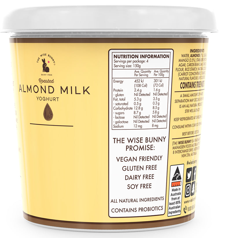 Indulge in the creamy goodness of Wise Bunny Roasted Almond Milk Mango Yoghurt. Made with premium ingredients, this dairy-free delight is rich in flavor and packed with nutrients. Perfect for a healthy and delicious treat anytime.