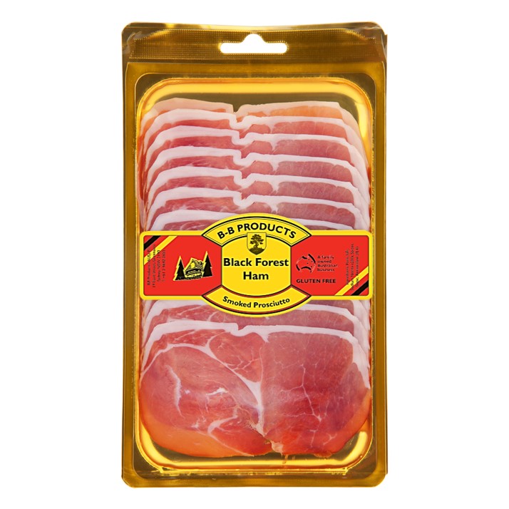 B-B Products Black Forest Ham 100g: Indulge in premium quality, thinly sliced Black Forest ham that is rich in flavor and perfect for sandwiches, salads, and charcuterie boards. Elevate your meals with this savory and versatile ham that is sure to satisfy your cravings.