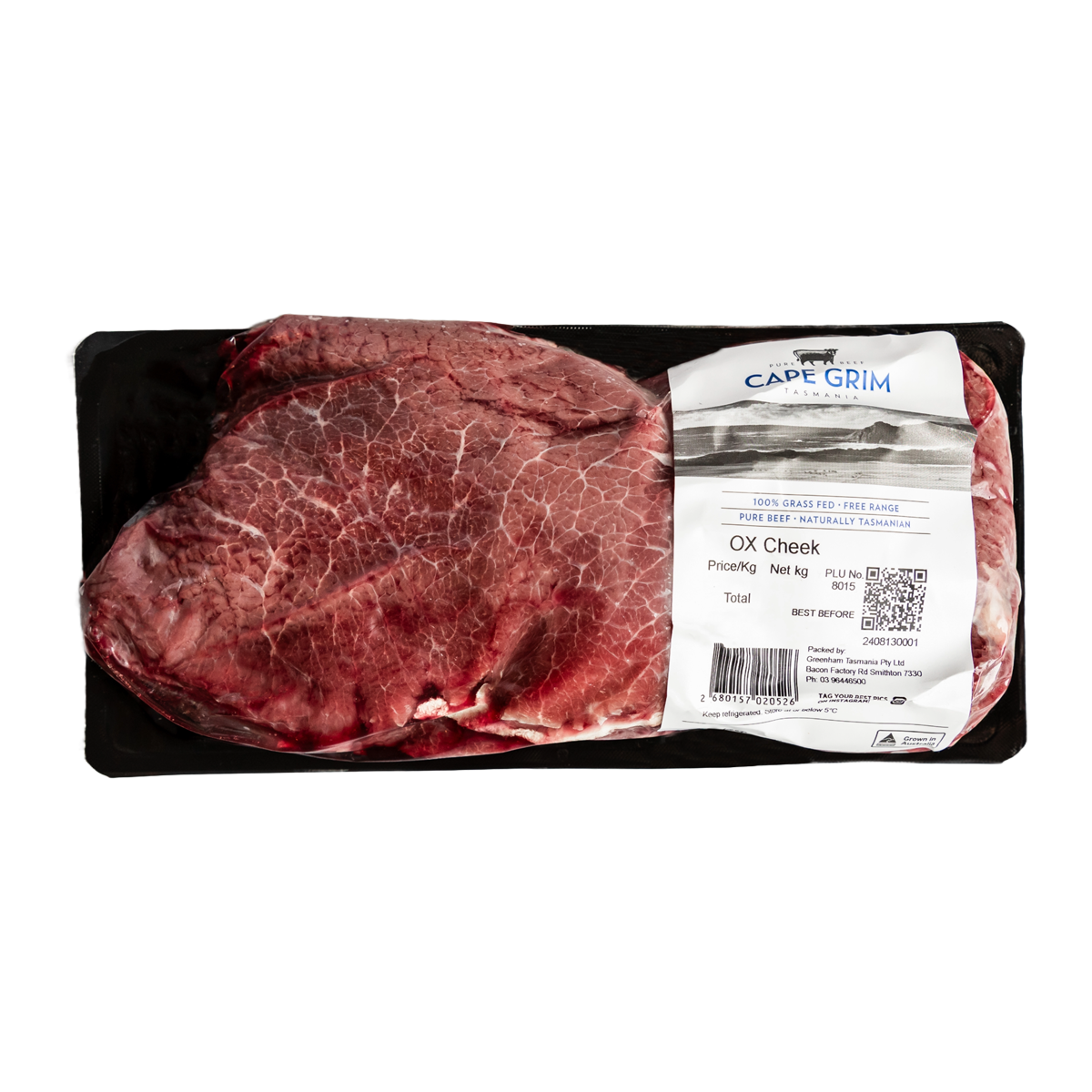 Tender and flavorful Cape Grim Beef Ox Cheek, weighing 600-900g, perfect for creating rich and hearty dishes. Ideal for slow cooking, this premium cut promises melt-in-your-mouth texture and robust taste. Elevate your culinary creations with this high-quality, sustainably sourced beef.