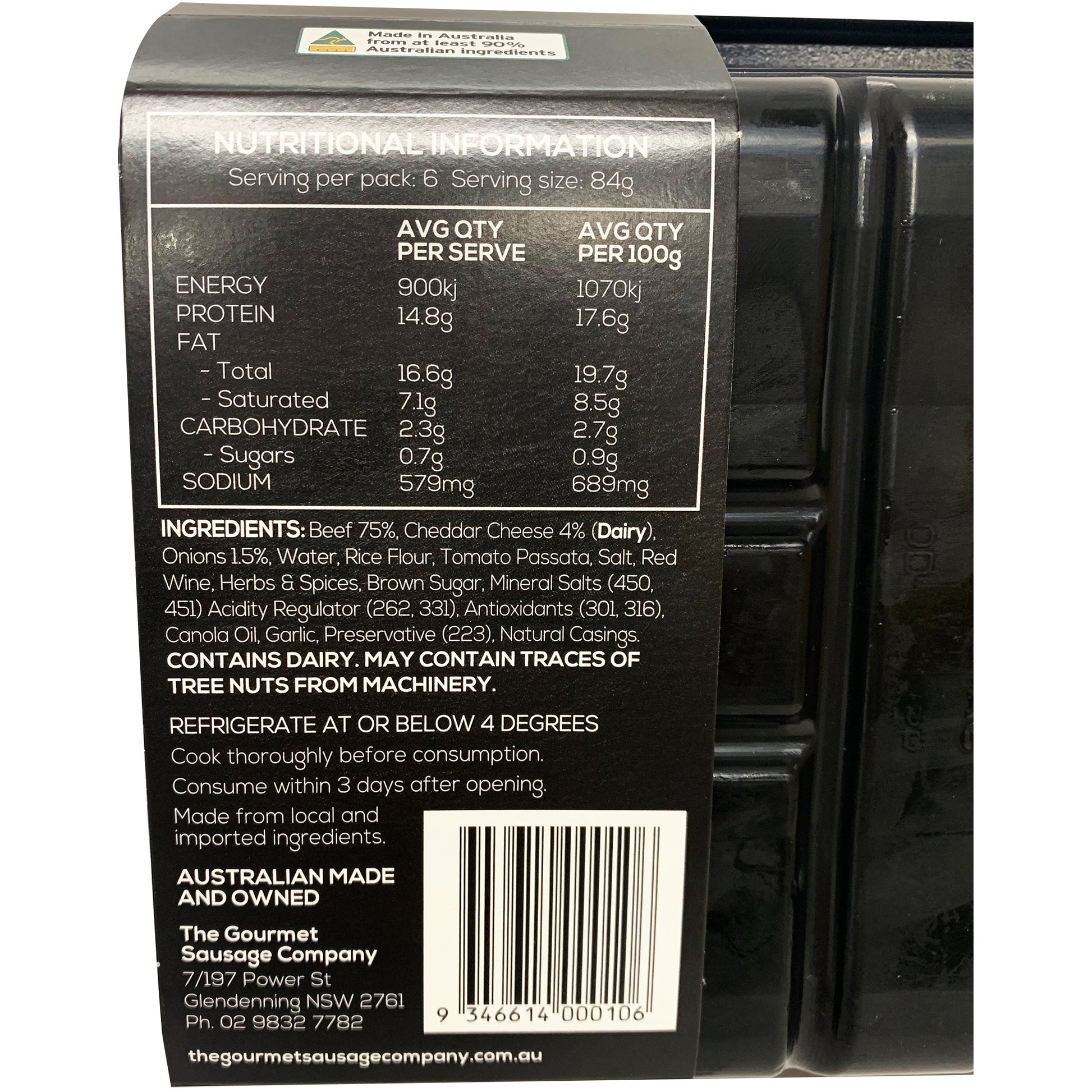 The Gourmet Sausage Beef King Island Cheddar and Caramelised Onion Sausages 500g