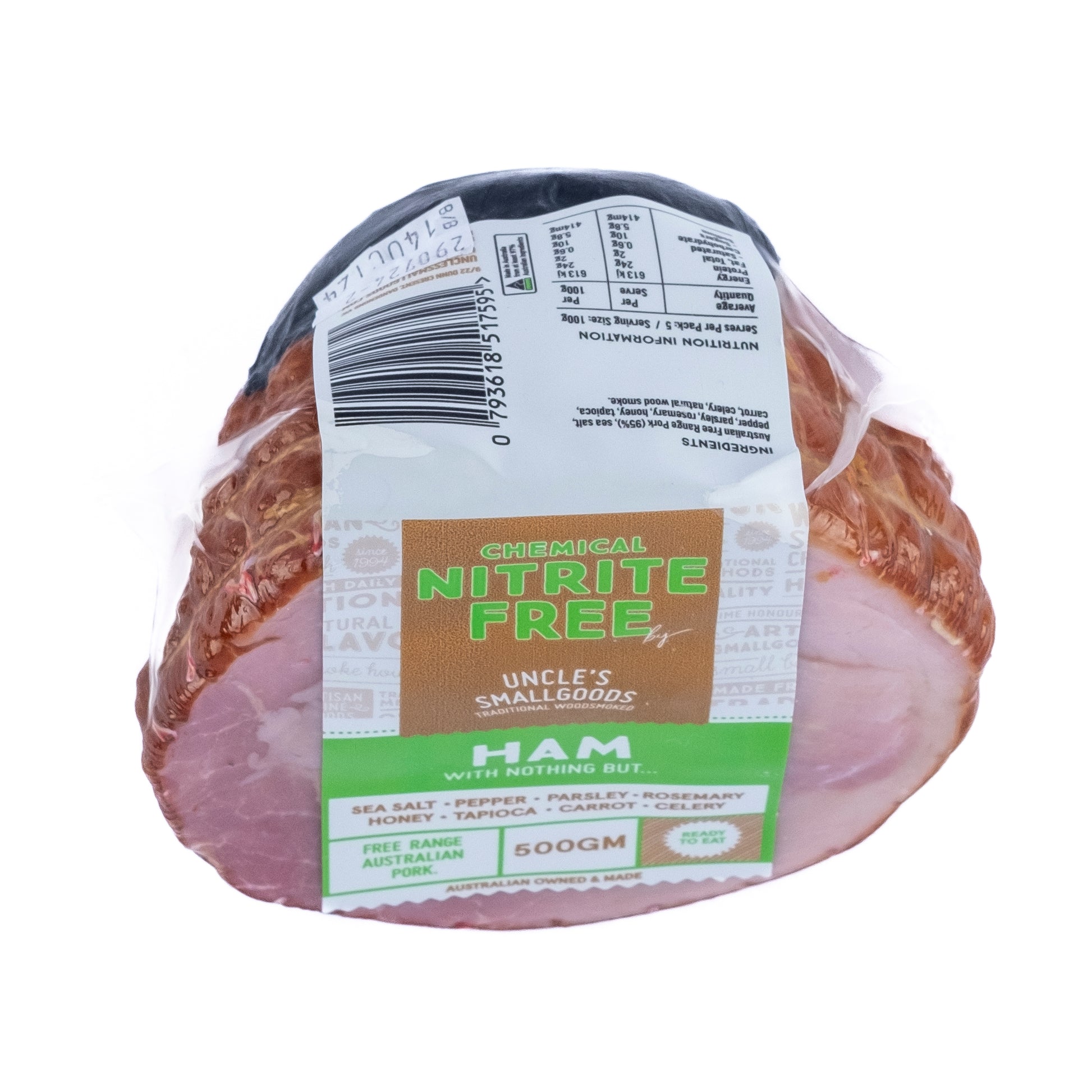 Uncle Smallgoods Nitrate Free Half Ham 500g offers a delicious and healthier option for your meals. Made without nitrates, this premium ham provides a natural and flavorful taste that you can enjoy guilt-free. Perfect for sandwiches, salads, or charcuterie boards, this ham is a versatile choice for any occasion. Order now to elevate your meals with Uncle Smallgoods' high-quality nitrate-free ham!