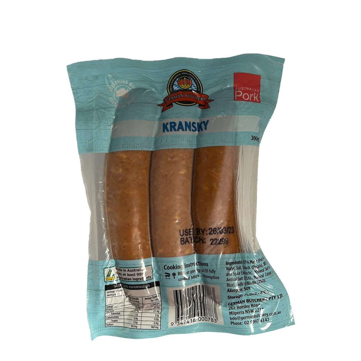 German Butchery Kransky 400g: Indulge in authentic German flavors with our premium Kransky sausages. Made with high-quality ingredients and traditional recipes, each bite is a savory delight. Perfect for grilling, frying, or adding to your favorite dishes. Elevate your meals with the rich taste of German Butchery Kransky. Order now for a delicious dining experience!
