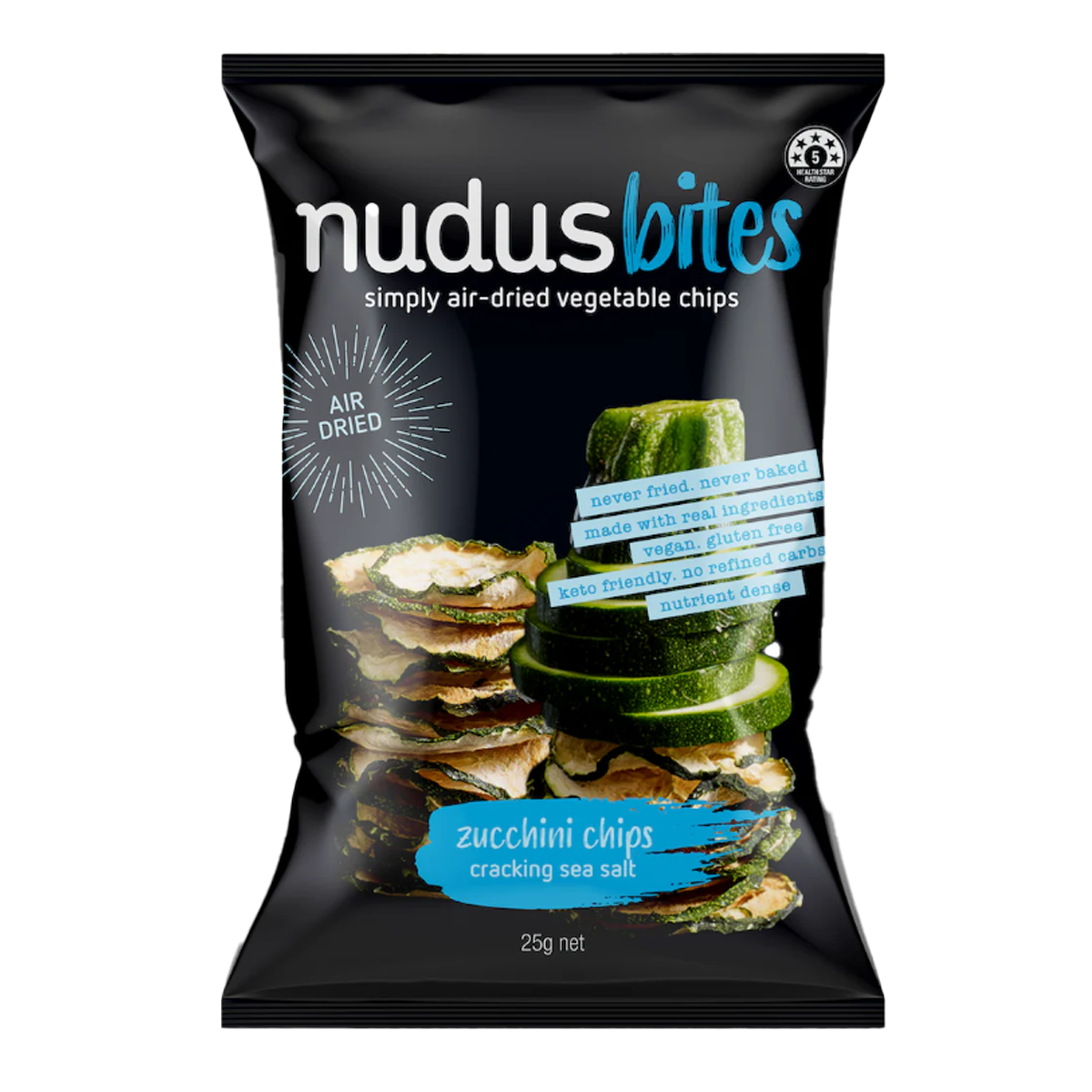 Nudus Zucchini Salt Chips 25g: Enjoy guilt-free snacking with our crispy, flavorful zucchini chips. Packed with nutrients and low in calories, these chips are the perfect healthy alternative to traditional snacks. Try them now for a deliciously satisfying crunch!