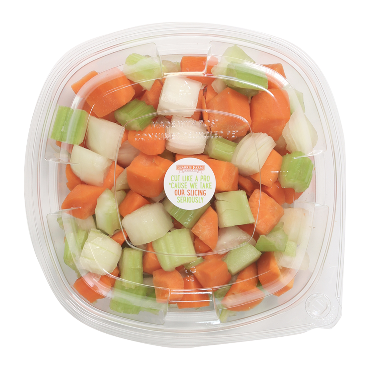 Harris Farm Mirepoix Soup Mix 380g: Elevate your meals with our premium blend of fresh vegetables, perfect for creating delicious and nutritious soups in minutes. Enjoy the convenience of a ready-to-use mix that adds depth of flavor to your dishes. Ideal for busy home cooks looking for a quick and easy way to enhance their culinary creations.