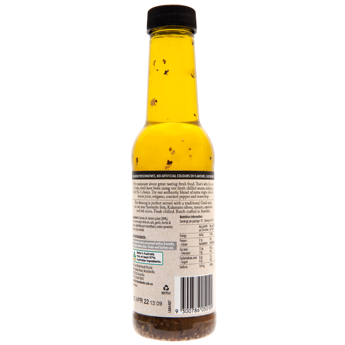 Birch and Waite Greek Lemon Dressing 250ml: Elevate your salads with our zesty and authentic Greek Lemon Dressing. Made with premium ingredients, this tangy dressing will add a burst of flavor to your dishes. Perfect for salads, marinades, and more. Try it now for a taste of Greece in every bite!