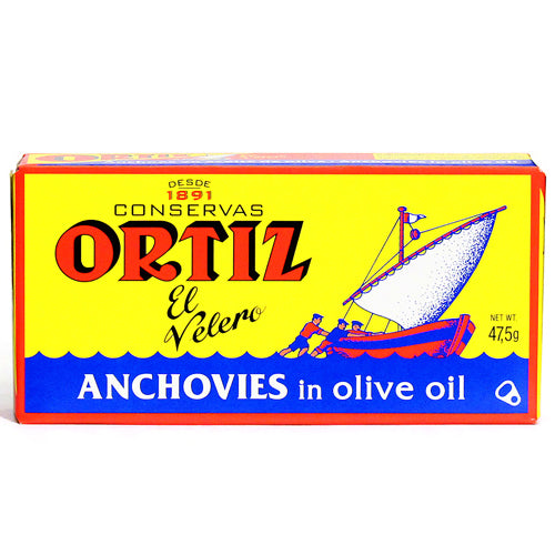 Ortiz Anchovies in Olive Oil 47.5g: Elevate your dishes with premium Ortiz anchovies packed in rich olive oil. Delight your taste buds with the perfect balance of savory and umami flavors. A must-have for any gourmet kitchen.
