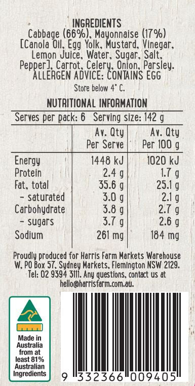 Harris Farm Side Salad Creamy Coleslaw 850g