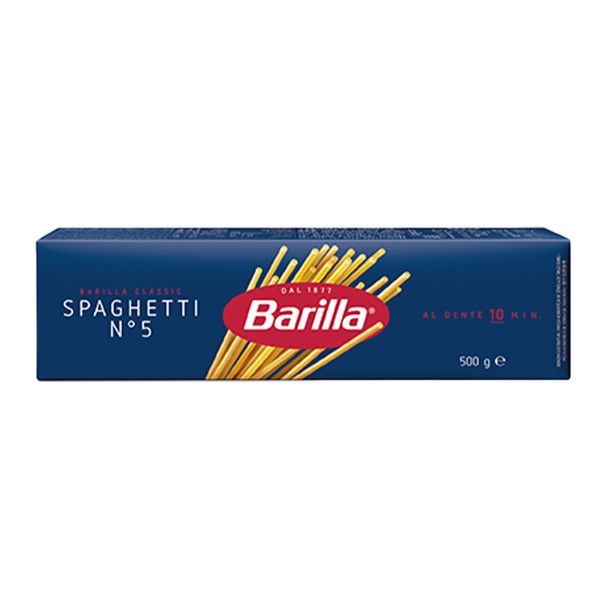 Barilla Pasta Spaghetti N.5 500g: Enjoy authentic Italian taste with our premium spaghetti pasta. Made from high-quality durum wheat, our pasta cooks to perfection every time, delivering a delicious al dente texture. Elevate your meals with Barilla Pasta Spaghetti N.5 - the perfect choice for pasta lovers.