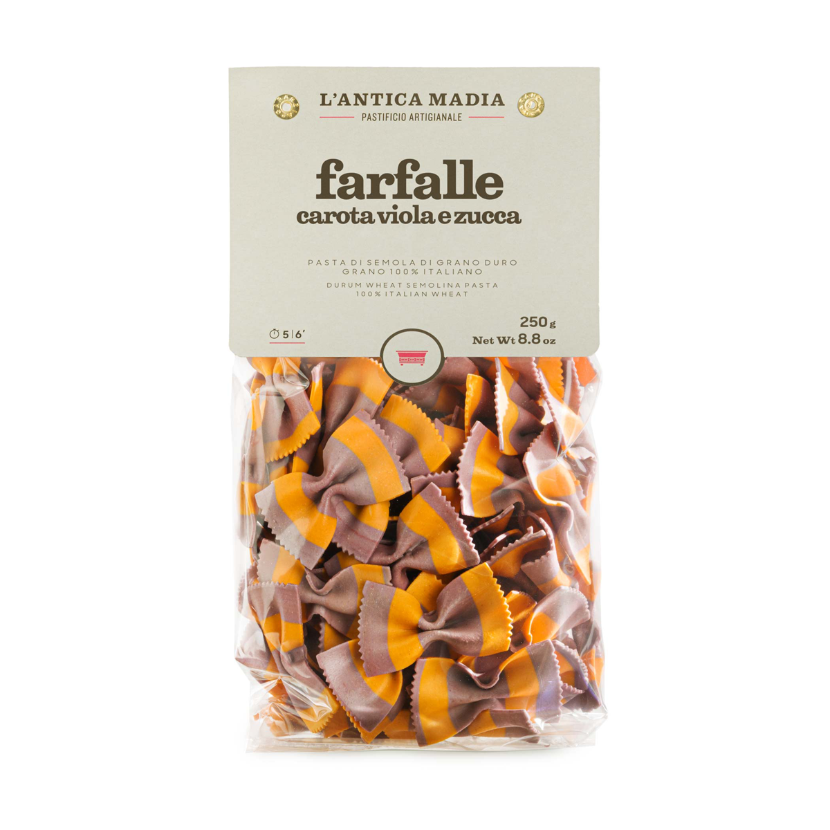 L'antica Madia Farfalle Black Carrots and Pumpkin 250g offers a unique blend of flavors and vibrant colors to elevate your dishes. Made with high-quality ingredients, these farfalle pasta are perfect for adding a touch of elegance to your meals. Enjoy the rich taste of black carrots and pumpkin in every bite. Ideal for those looking to add a gourmet twist to their cooking.