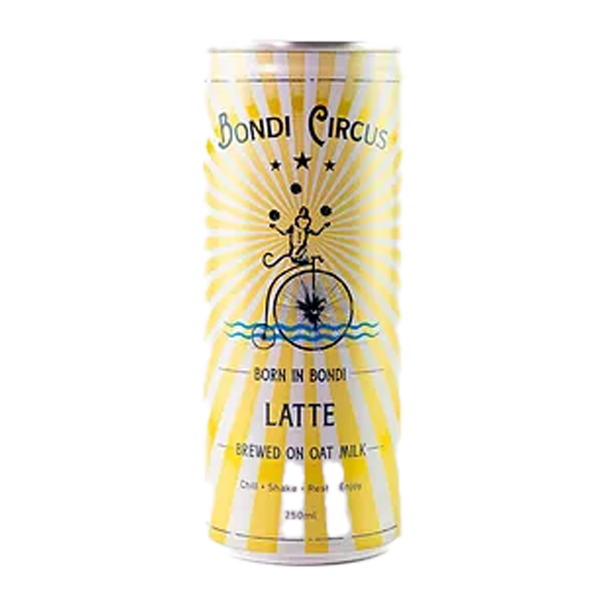 Bondi Circus Oat Milk Latte 250ml: Indulge in a creamy and delicious dairy-free latte experience with our premium oat milk blend. Packed with nutrients and antioxidants, this energizing beverage is the perfect guilt-free treat to kickstart your day. Enjoy the rich taste of coffee with the goodness of oat milk in every sip.