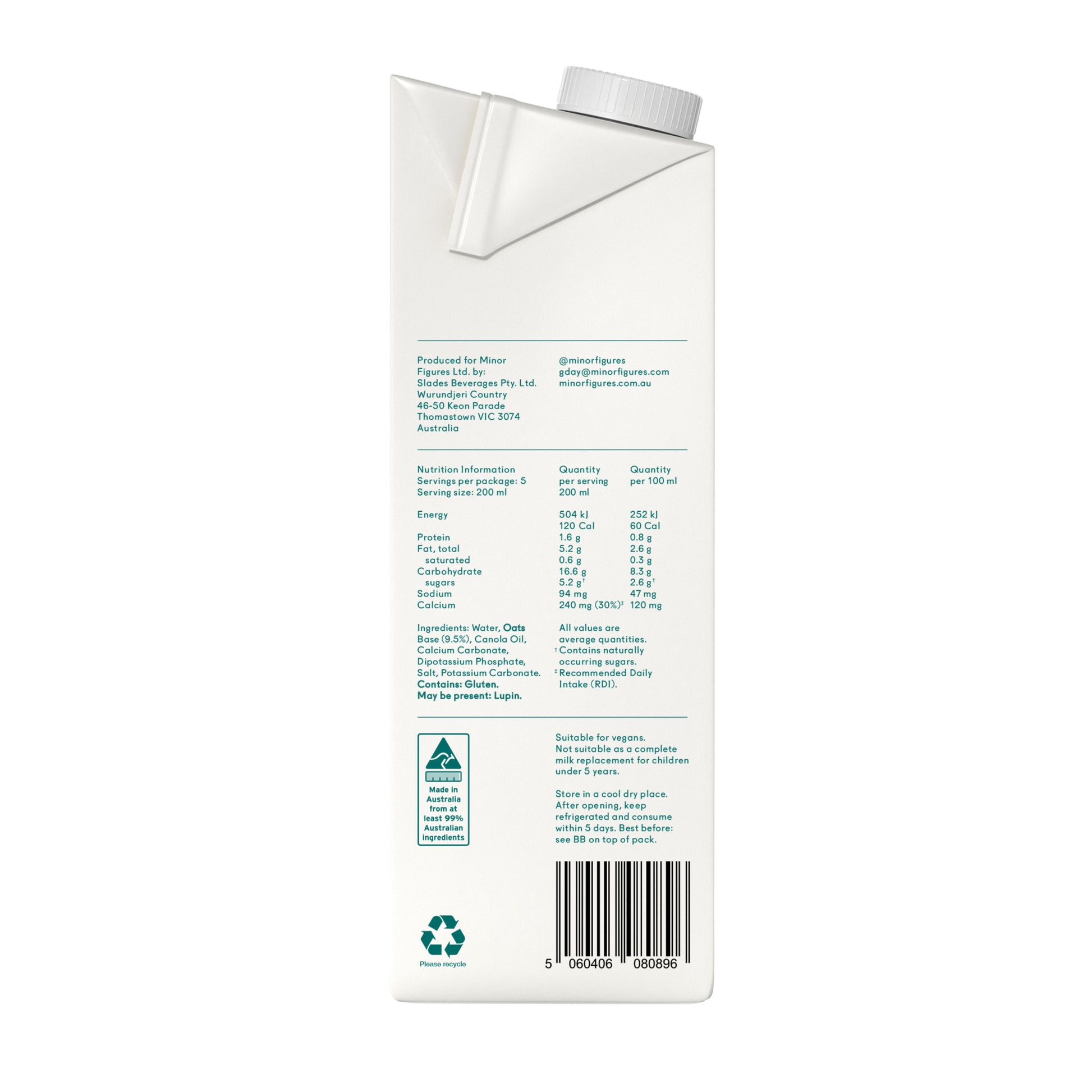 - Ingredients: Water, Oats, Rapeseed oil, Tricalcium Phosphate, Calcium carbonate, Salt.
