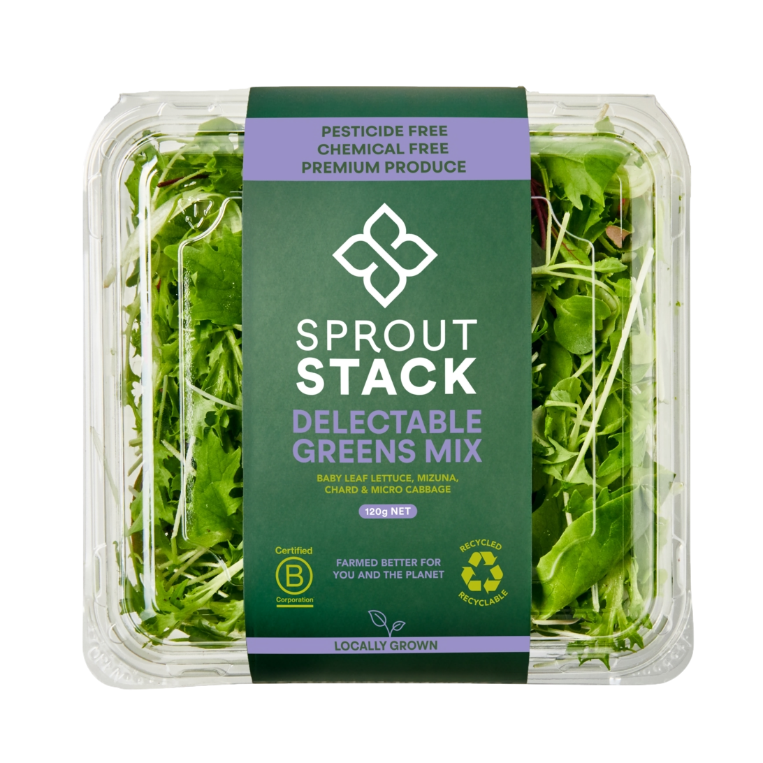 Sprout Stack Delectable Greens Mix 120g offers a nutrient-packed blend of fresh, organic greens to elevate your meals with vibrant flavors and health benefits. Boost your well-being and culinary creations with this convenient and delicious mix of superfoods.