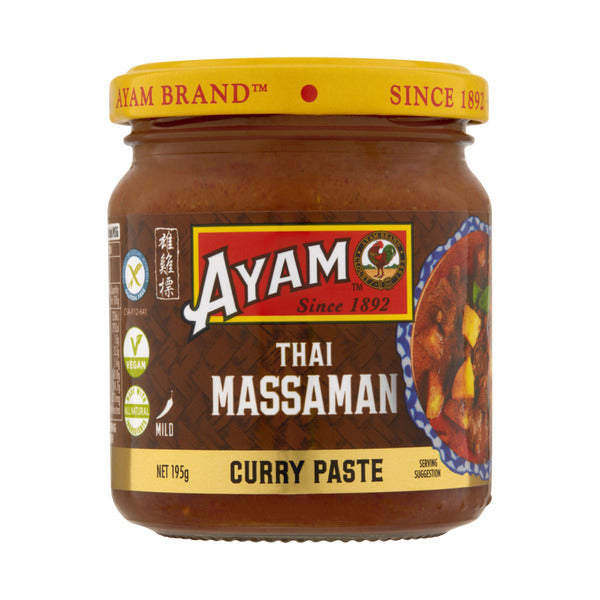 Ayam Mussaman Paste 195g: Elevate your dishes with authentic Thai flavors. Crafted with premium ingredients for a rich and aromatic taste experience. Perfect for quick and easy homemade curries. Unlock the secret to delicious meals in minutes.