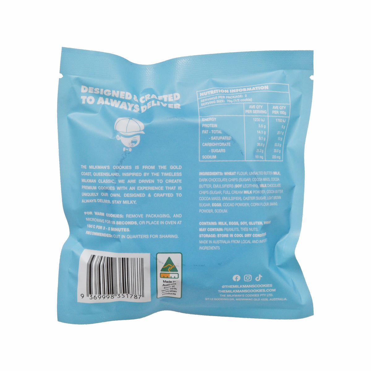 Indulge in rich, decadent chocolate goodness with The Milkman's Cookies Double Choc 140g. Satisfy your sweet cravings with every bite of these delicious, freshly baked cookies. Perfect for a quick snack or a sweet treat any time of the day. Order now and experience pure chocolate bliss!