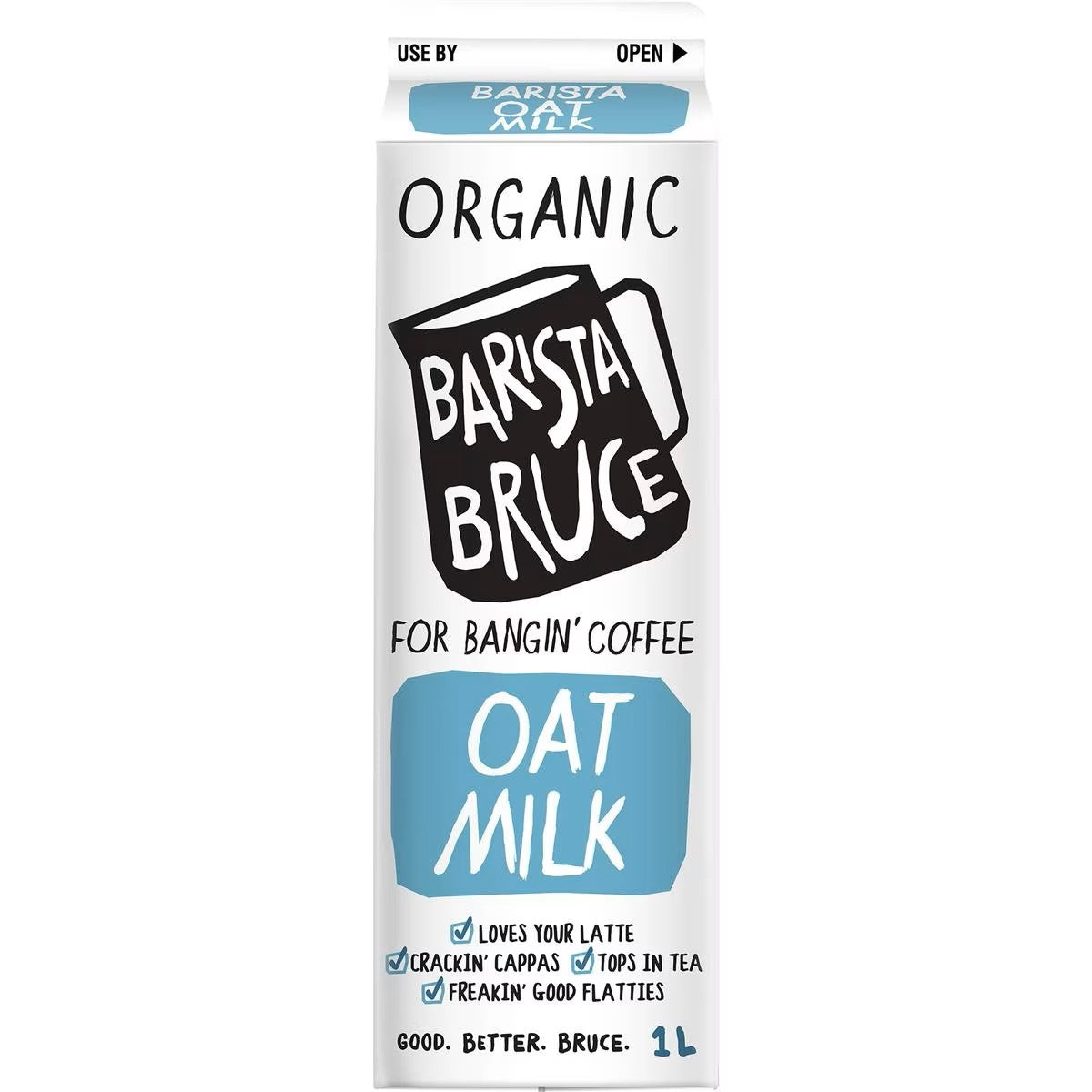 Barista Bruce Organic Oat Milk 1L: Elevate your coffee experience with our creamy, plant-based oat milk. Made from high-quality organic oats, our dairy-free alternative is perfect for creating rich and frothy lattes. Boost your morning routine with a sustainable and delicious choice that's good for you and the planet.