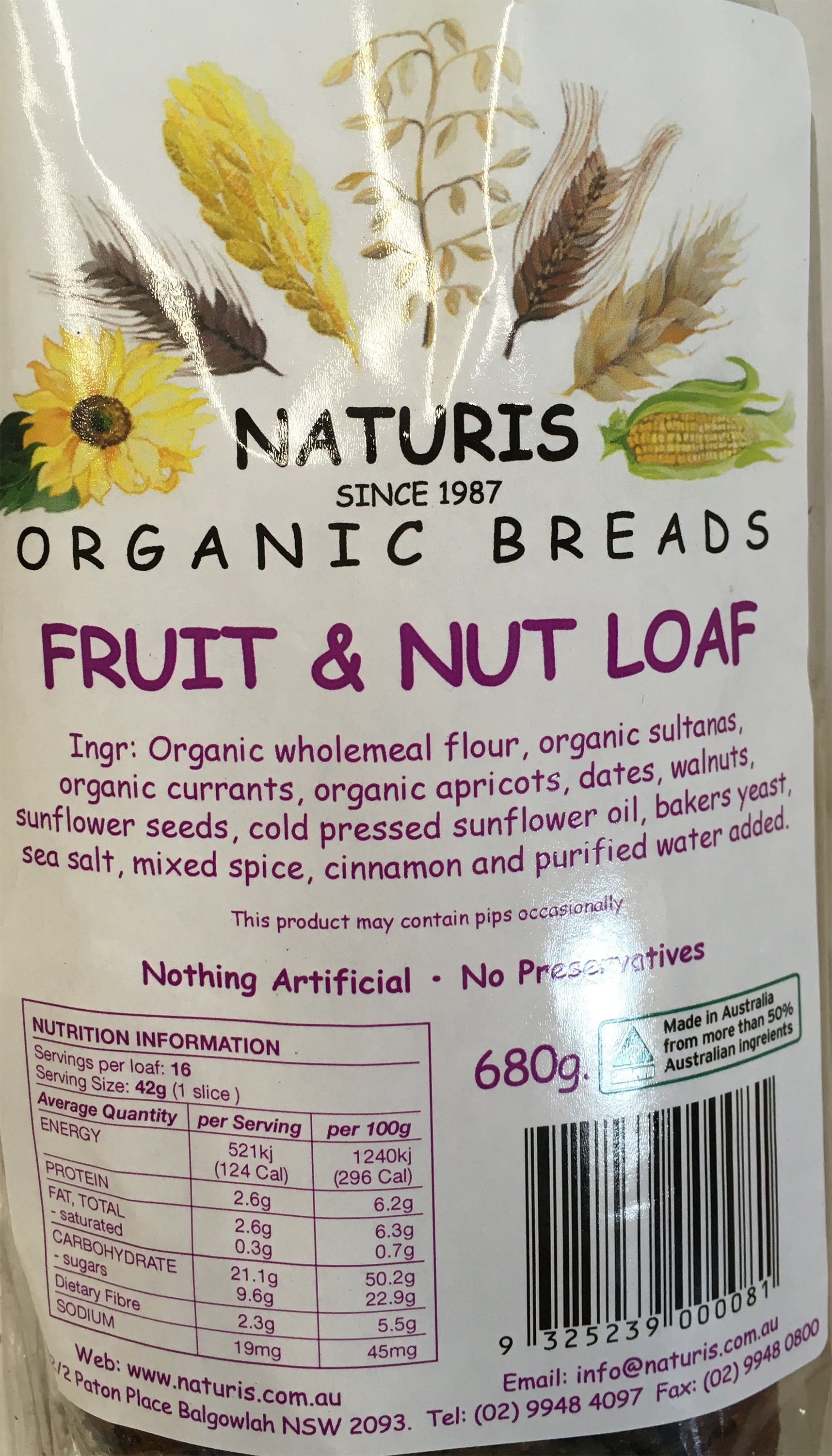 Naturis Organic Breads Fruit And Nut Loaf 680g