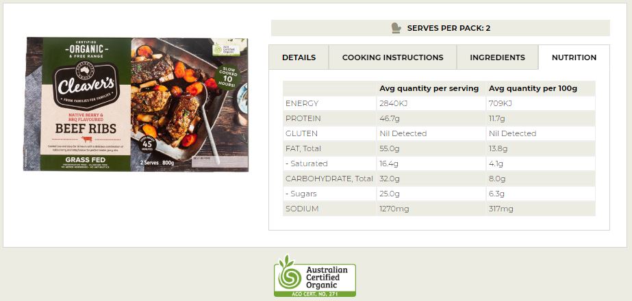 Savor the rich, smoky flavor of Cleaver's Organic Beef Ribs infused with Native Berry & BBQ seasonings. Made with premium organic ingredients, each 800g pack promises a mouthwatering experience that's both delicious and sustainable. Elevate your next meal with Cleaver's Beef Ribs - a guilt-free indulgence for the conscious foodie.
