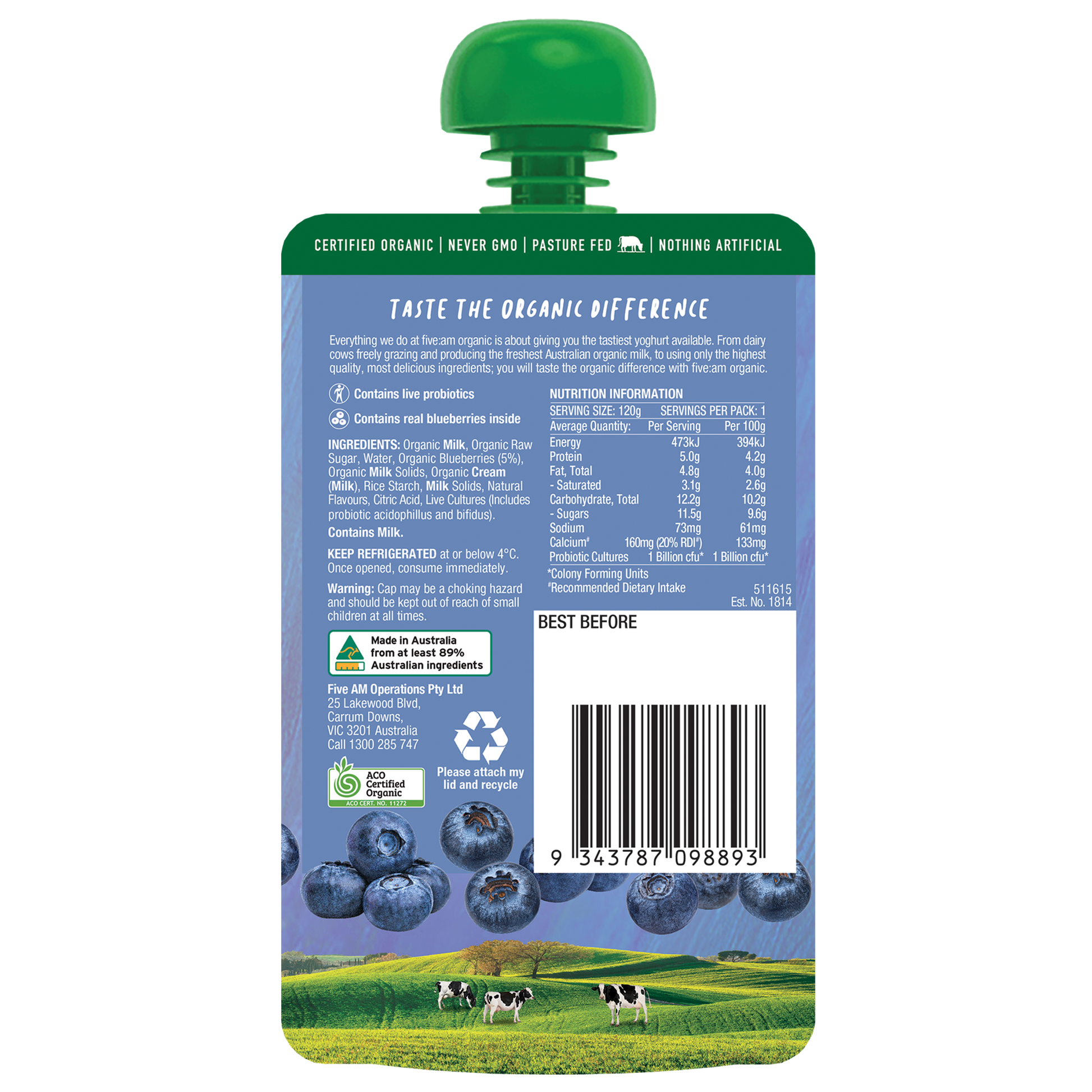 Five AM Blueberry Organic Kids Yoghurt 120g