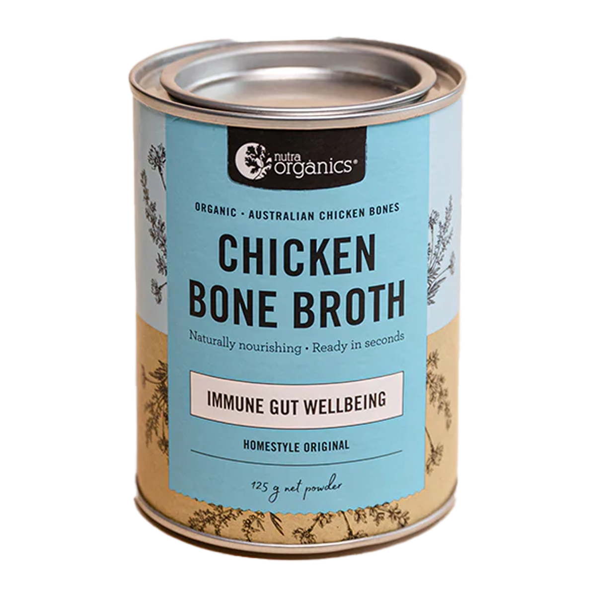 Nutra Organics Chicken Bone Broth 125g: Boost your health with our nourishing bone broth made from organic ingredients. Packed with essential nutrients and collagen to support gut health, immunity, and glowing skin. Easy to prepare and perfect for a quick, nutritious meal or snack. Elevate your wellness routine with every sip.