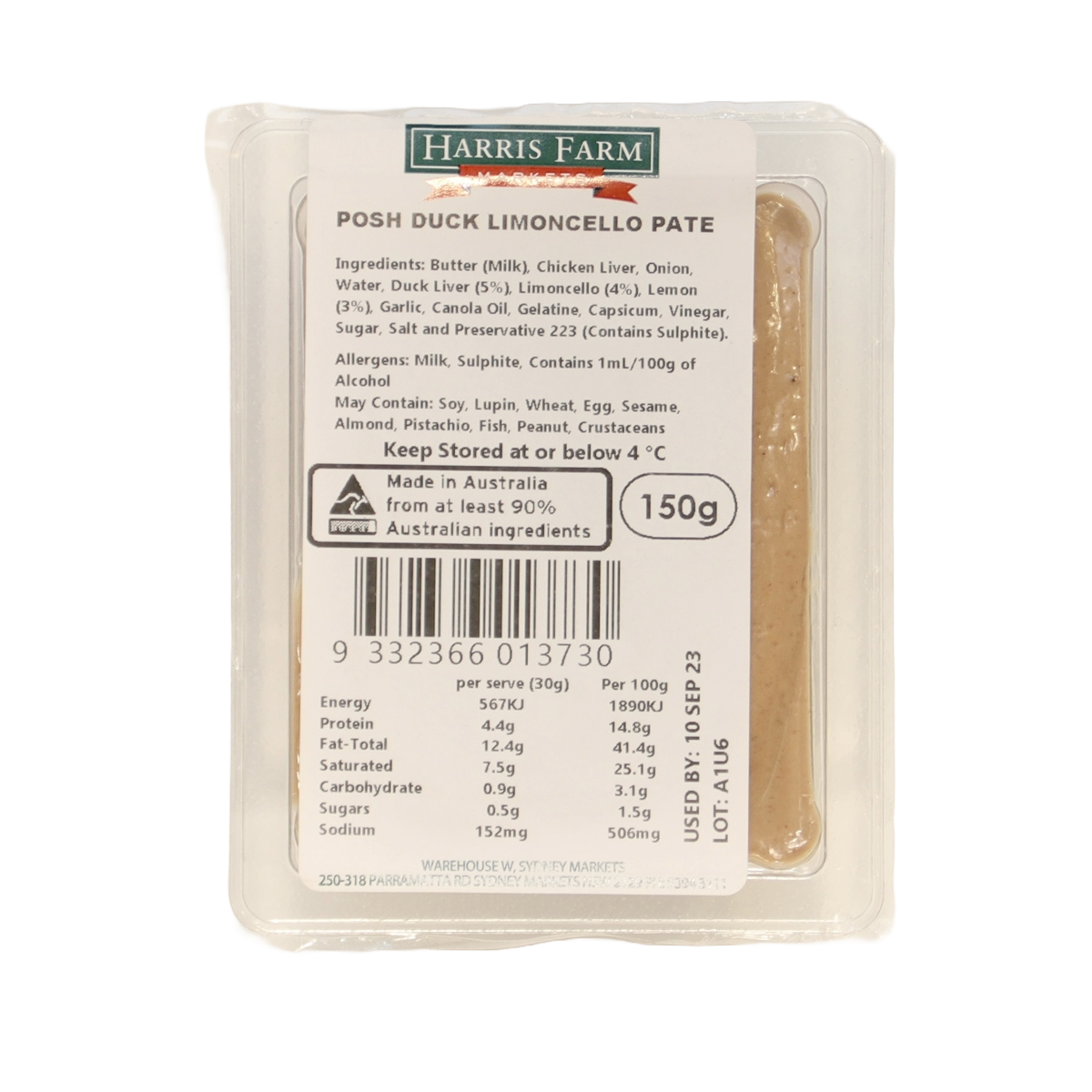 Posh Foods Duck Limoncello Pate 150g: Indulge in a gourmet experience with our exquisite Duck Limoncello Pate. Crafted with premium ingredients, this luxurious spread offers a perfect balance of rich duck flavor and zesty lemon notes. Elevate your culinary creations with this sophisticated delicacy.