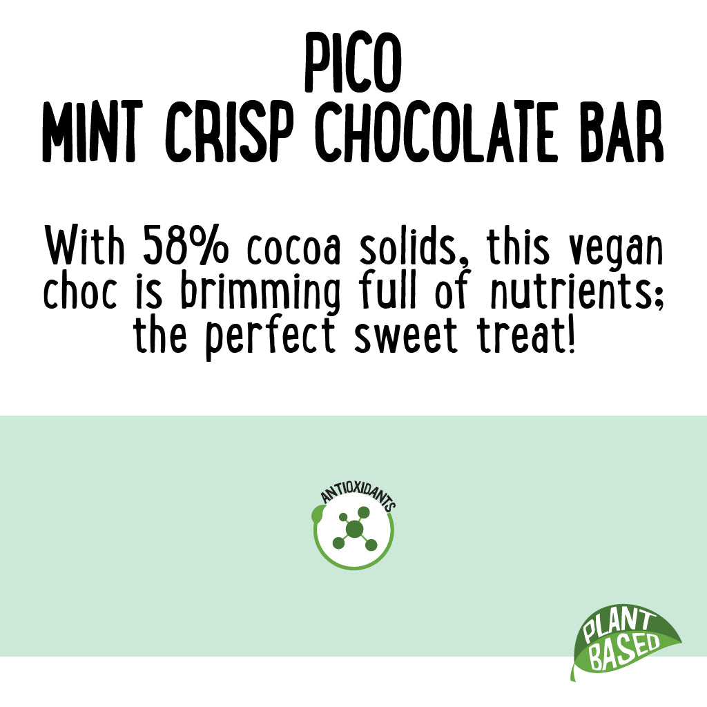 Indulge in the rich and refreshing taste of Pico Mint Crisp Dark Chocolate. Made with premium ingredients, this 80g bar offers a perfect balance of decadent dark chocolate and cool mint flavor. Satisfy your sweet cravings with every bite of this irresistible treat. Perfect for a quick pick-me-up or as a thoughtful gift for chocolate lovers.